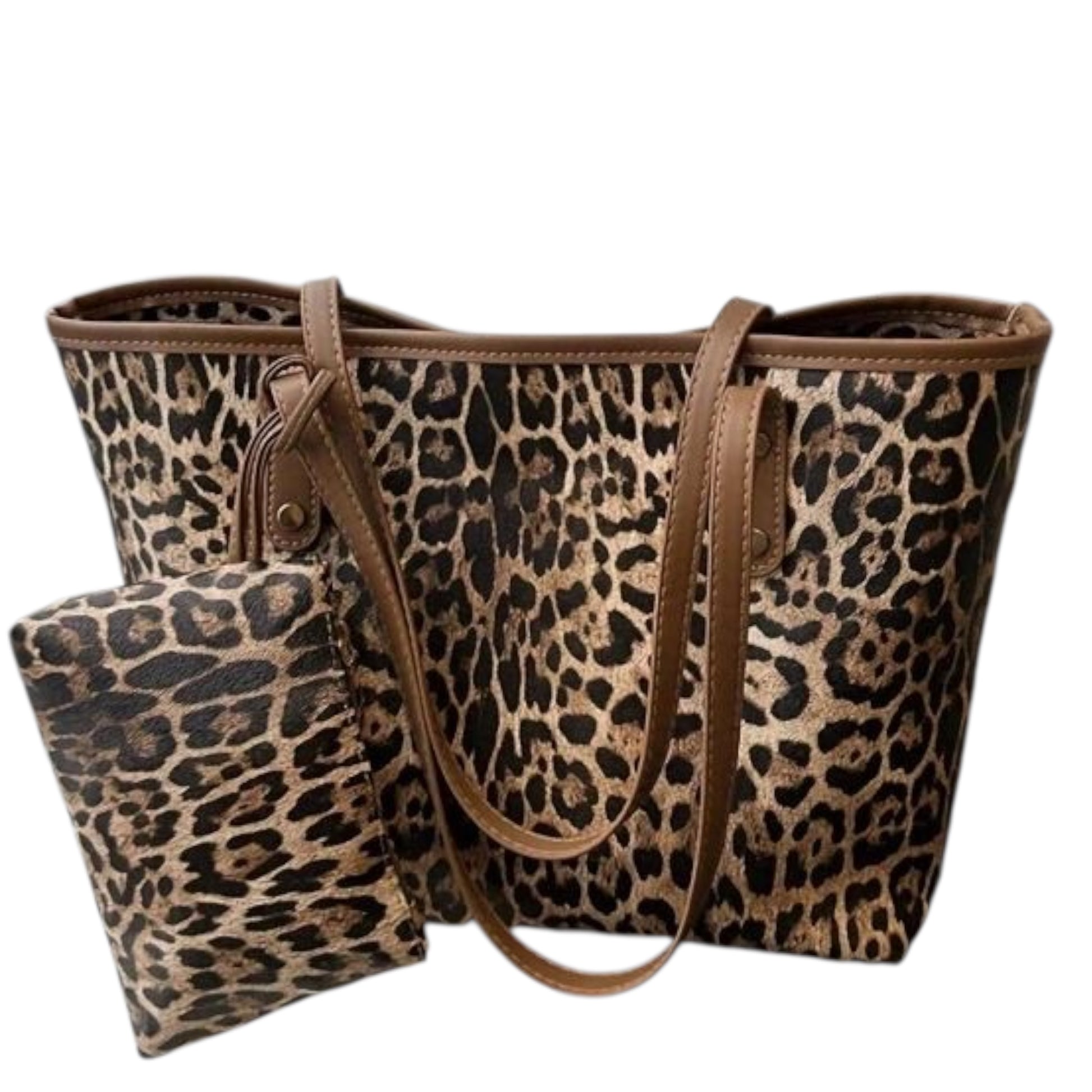 Çantë Mode e mesme+ Portofol Makeup. Çantë Dore me Print Leopard, Dizajn Elegant për Nënat dhe vajzat Moderne, Ideale për Dhuratë .