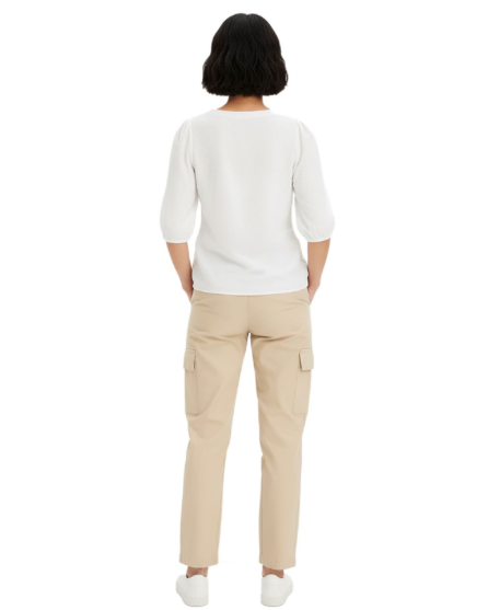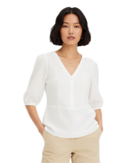 Një bluzë e thjeshtë dhe elegante, perfekte për ditët e ngrohta të verës. Me dekolte V, mëngë 3/4 dhe dizajn të lehtë puff, kjo bluzë ofron rehati dhe freski falë pëlhurës prej viskoze të hollë. Kombinohet lehtësisht si për përditshmëri, ashtu edhe për raste më të veçanta.