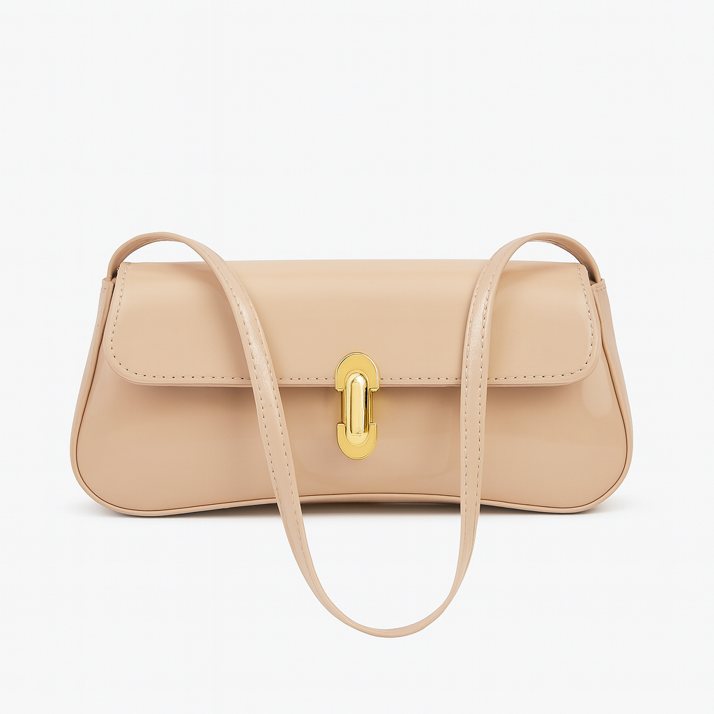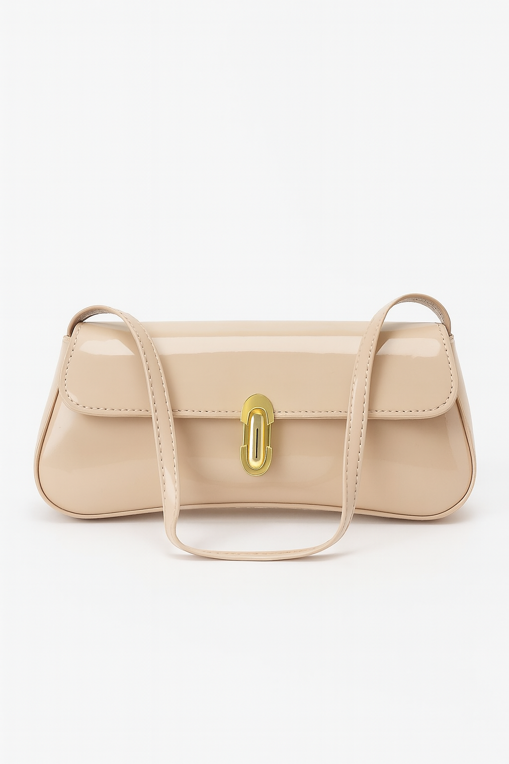 Çantë Mini Elegante – Ngjyrë Bejsh me Shkëlqim