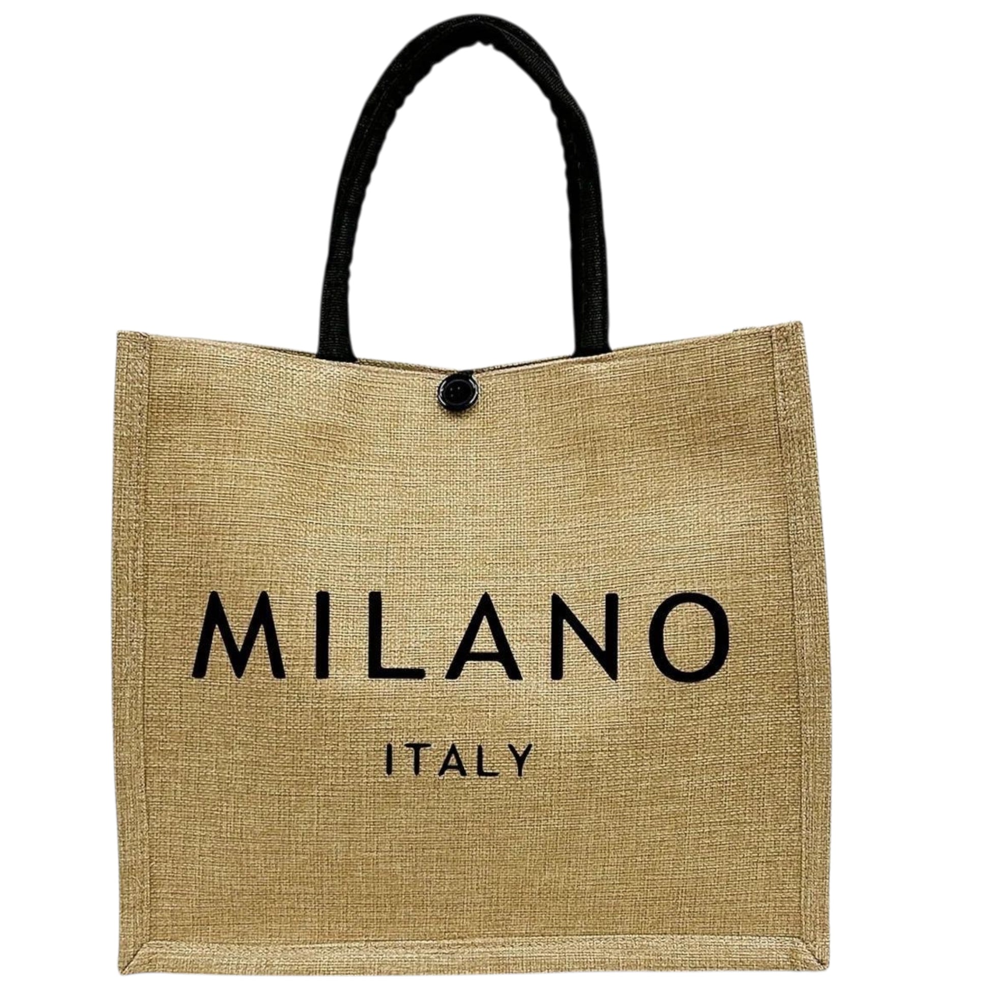 Ky set i bukur dhe praktik i çantave tote sjell një kombinim të përsosur mes stilit italian dhe funksionalitetit. Çanta kryesore është e bërë nga material i qëndrueshëm burlap, e lehtë për tu mbajtur dhe e përshtatshme për shopping, punë apo udhëtime. Dorezat e zeza të forta dhe mbyllja me buckle sigurojnë mbajtje të sigurt dhe rehati.