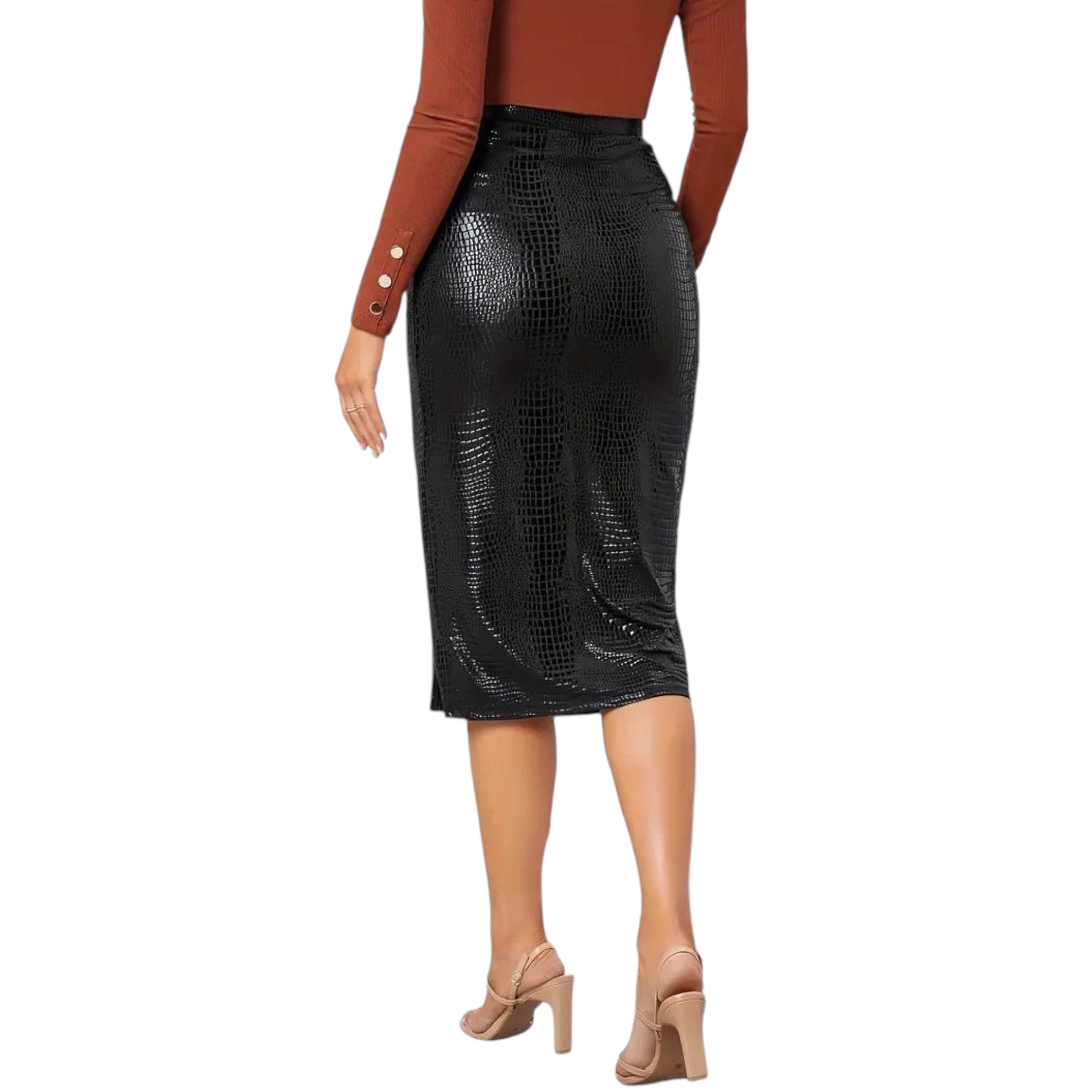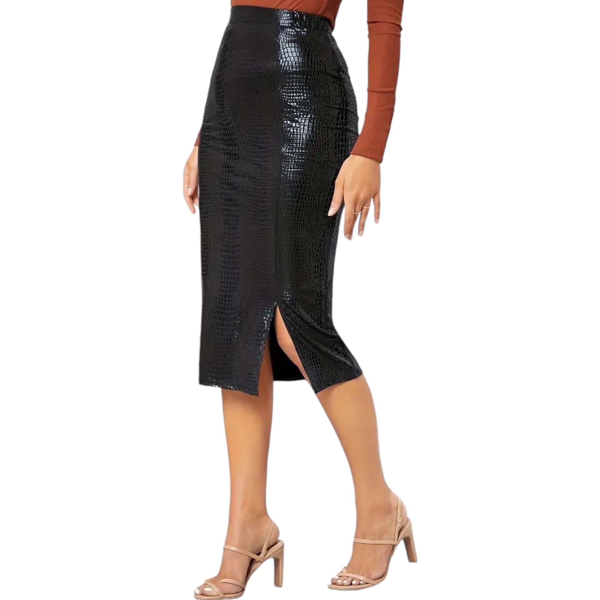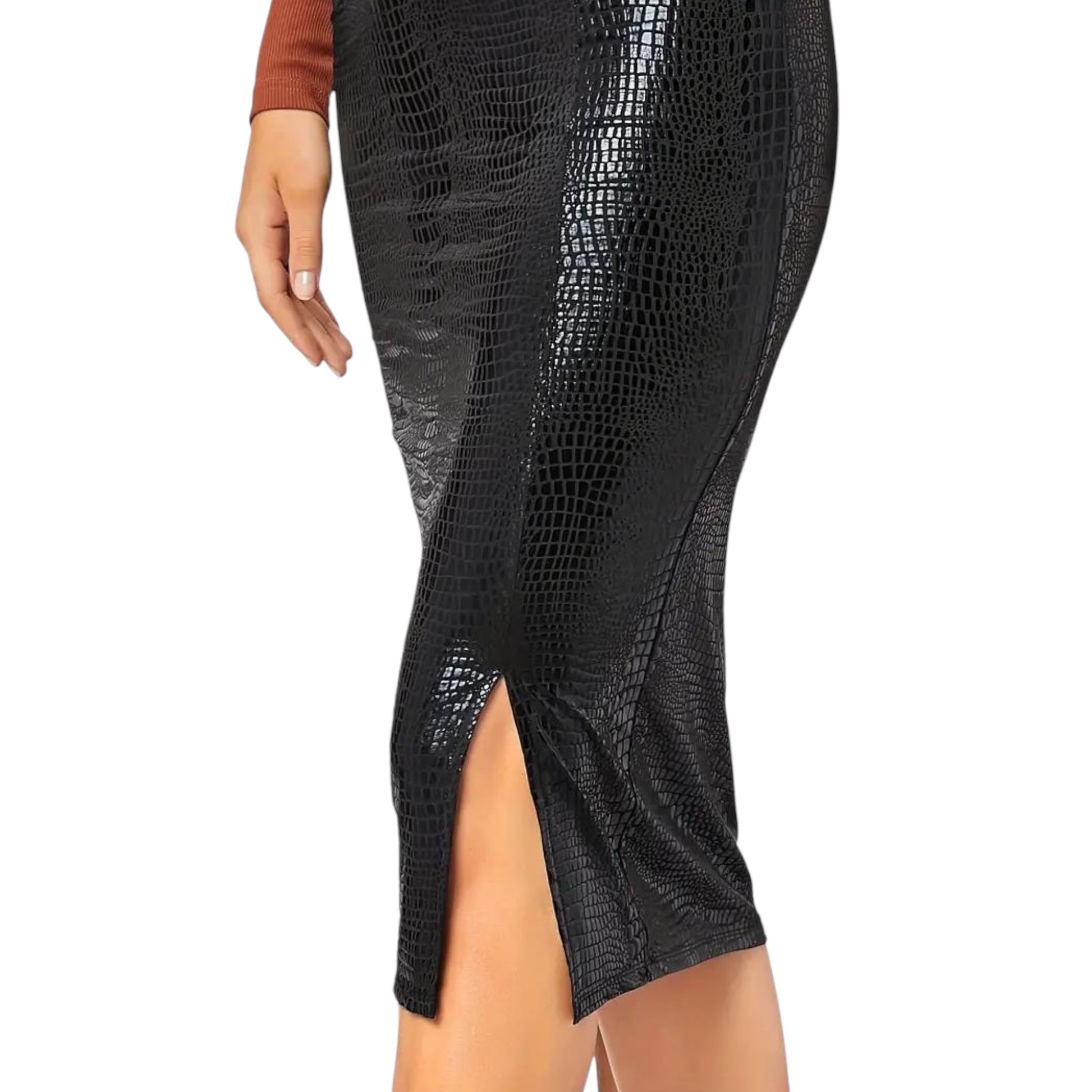 Fund i gjatë poshtë gjuri model lekure Krokodili e zezë. Komode falë materialit me cilësi të lartë.