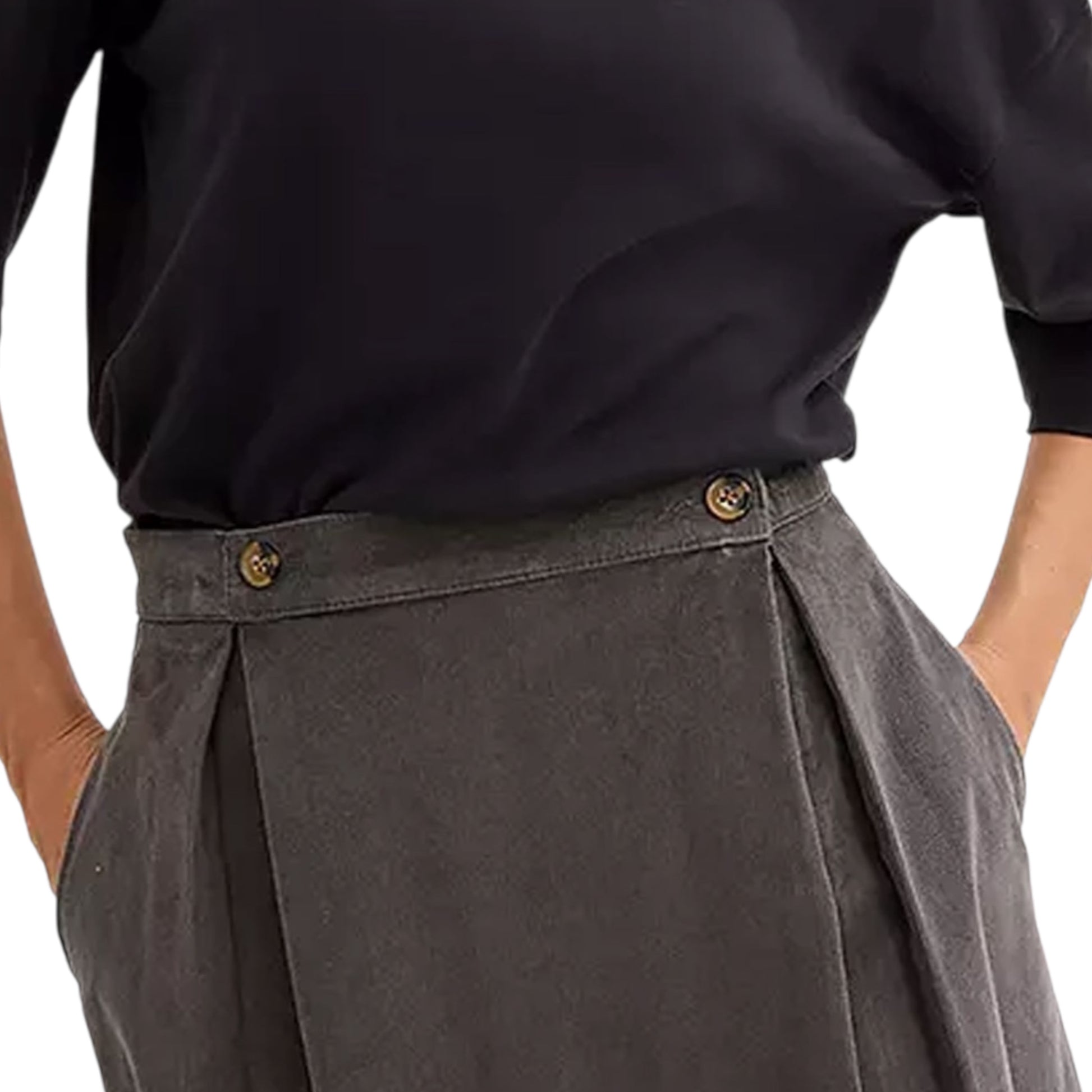 ✨ Fund midi për femra – me pala, prej pambuku organik, ngjyrë gri ✨
