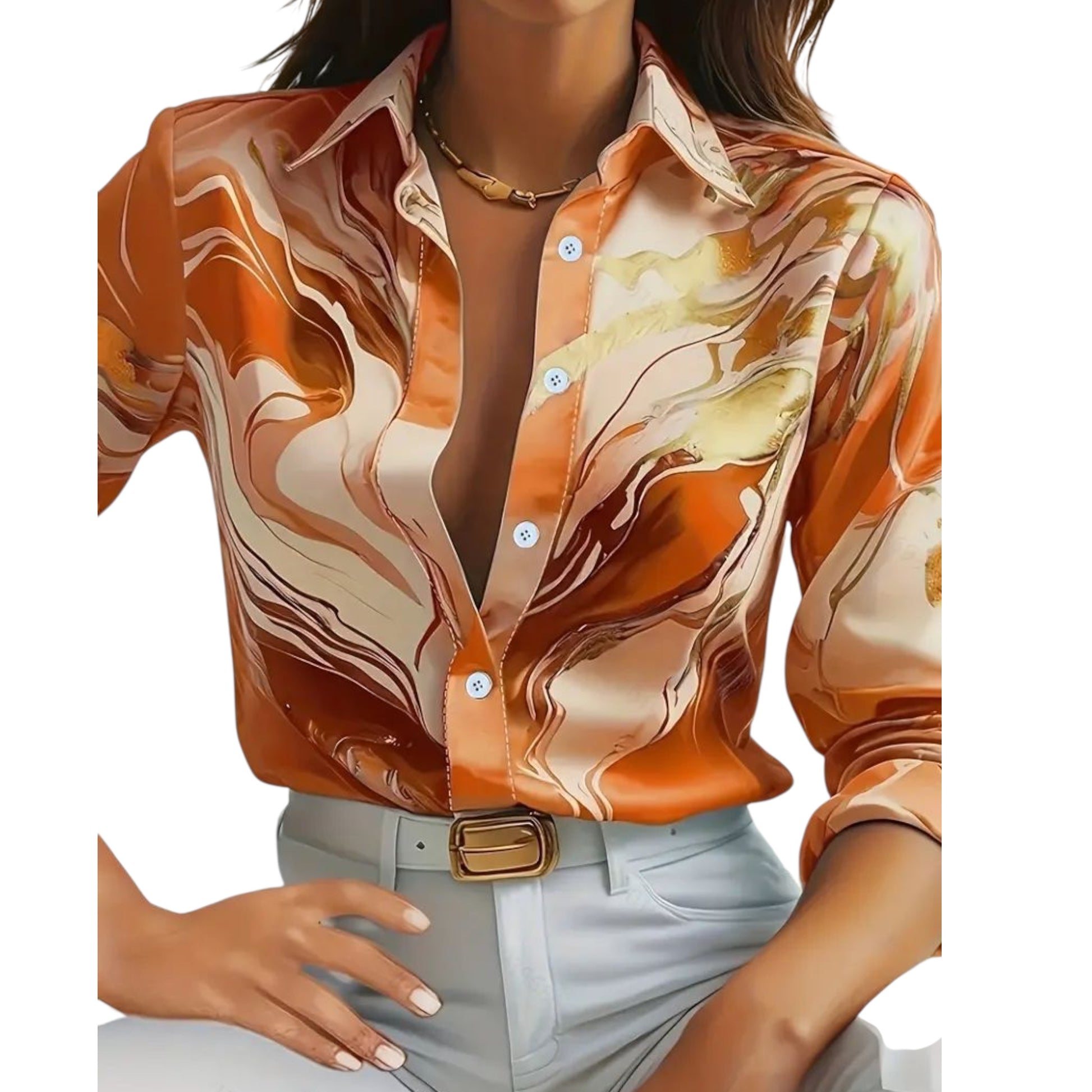 Këmishë me mëngë të gjata me pulla gri të ndriteshme shumëngjyrëshe. Komode falë materialit me cilësi të lartë.