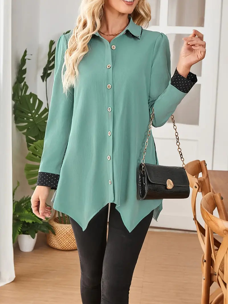 Këmishë për Femra me Detaje Polka-Dot – Jaka Lapel & Fund Asimetrik