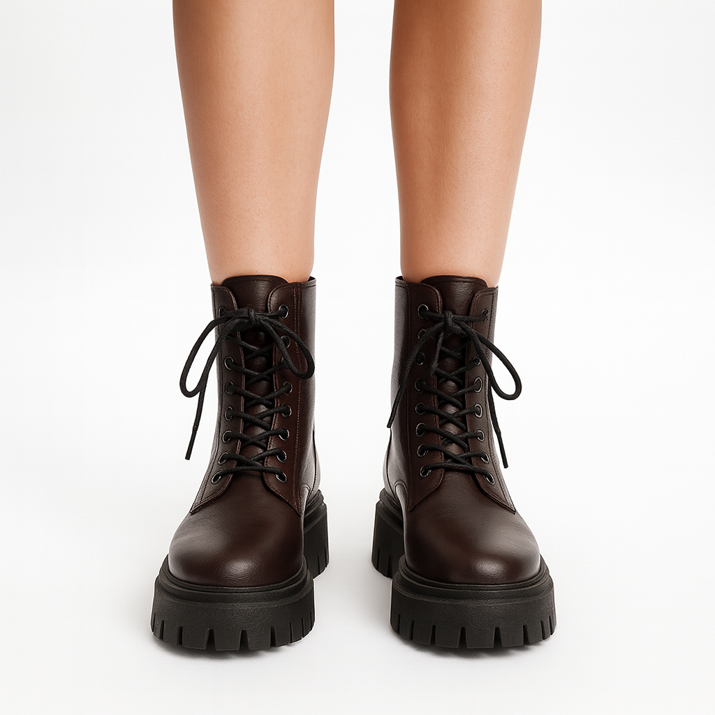 Boots Lëkurë me lidhëse përpara dhe gomë të lartë. Komode falë materialit me cilësi të lartë.