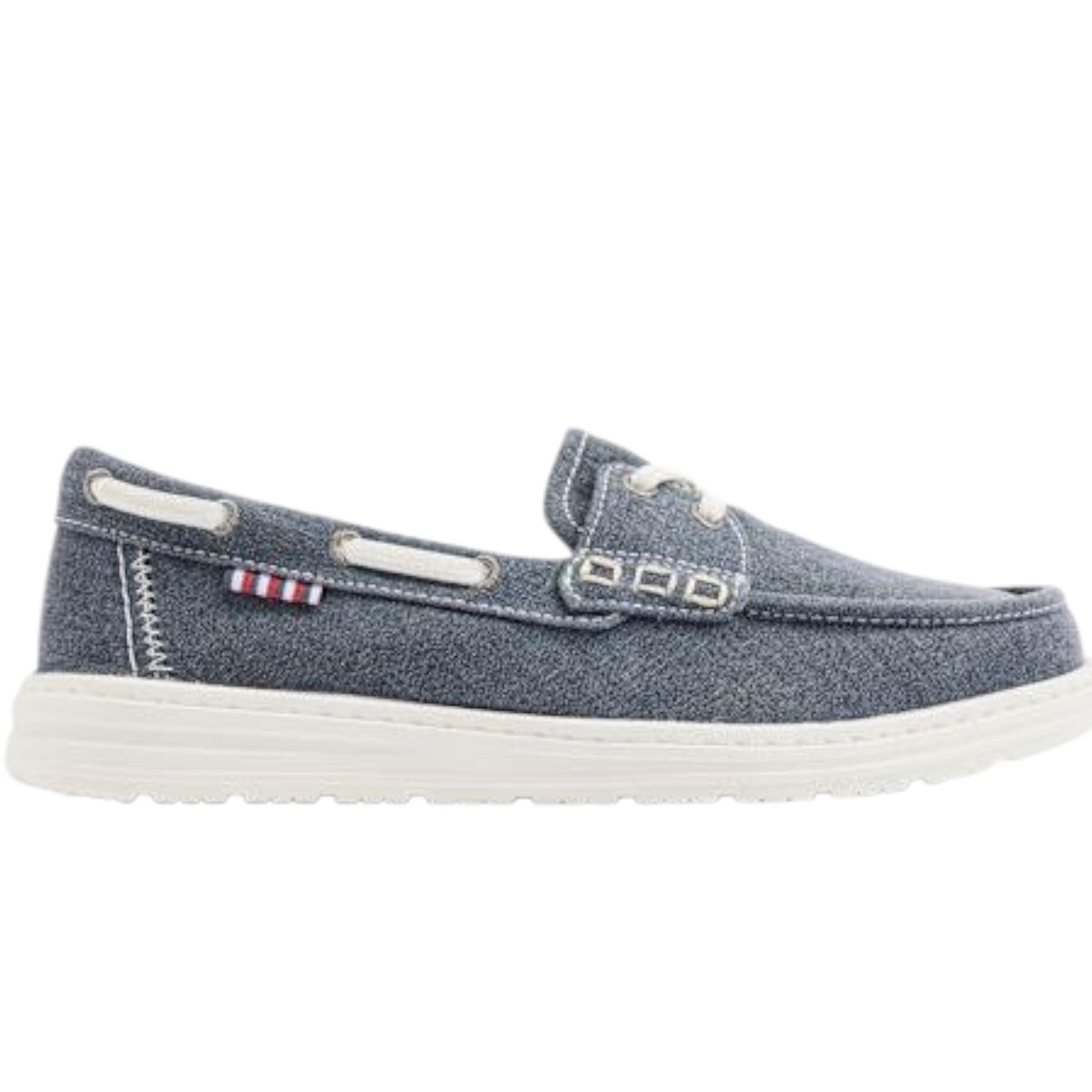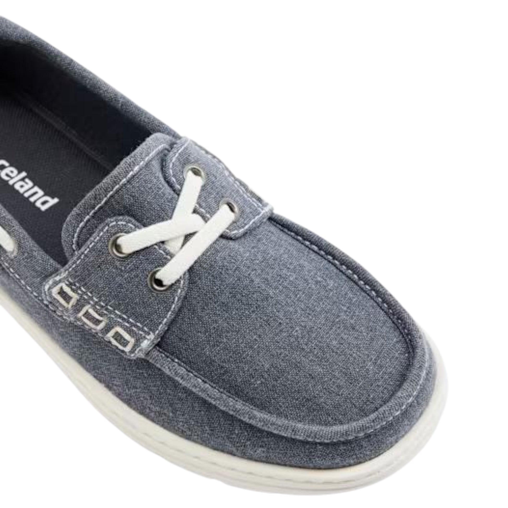 Këto mokasina të markës Graceland janë zgjedhja ideale për një look casual dhe komod gjatë gjithë ditës. Të punuara në material tekstili blu të errët, me qepje të bardha kontrasti dhe lidhëse dekorative, ato sjellin një stil modern dhe femëror.