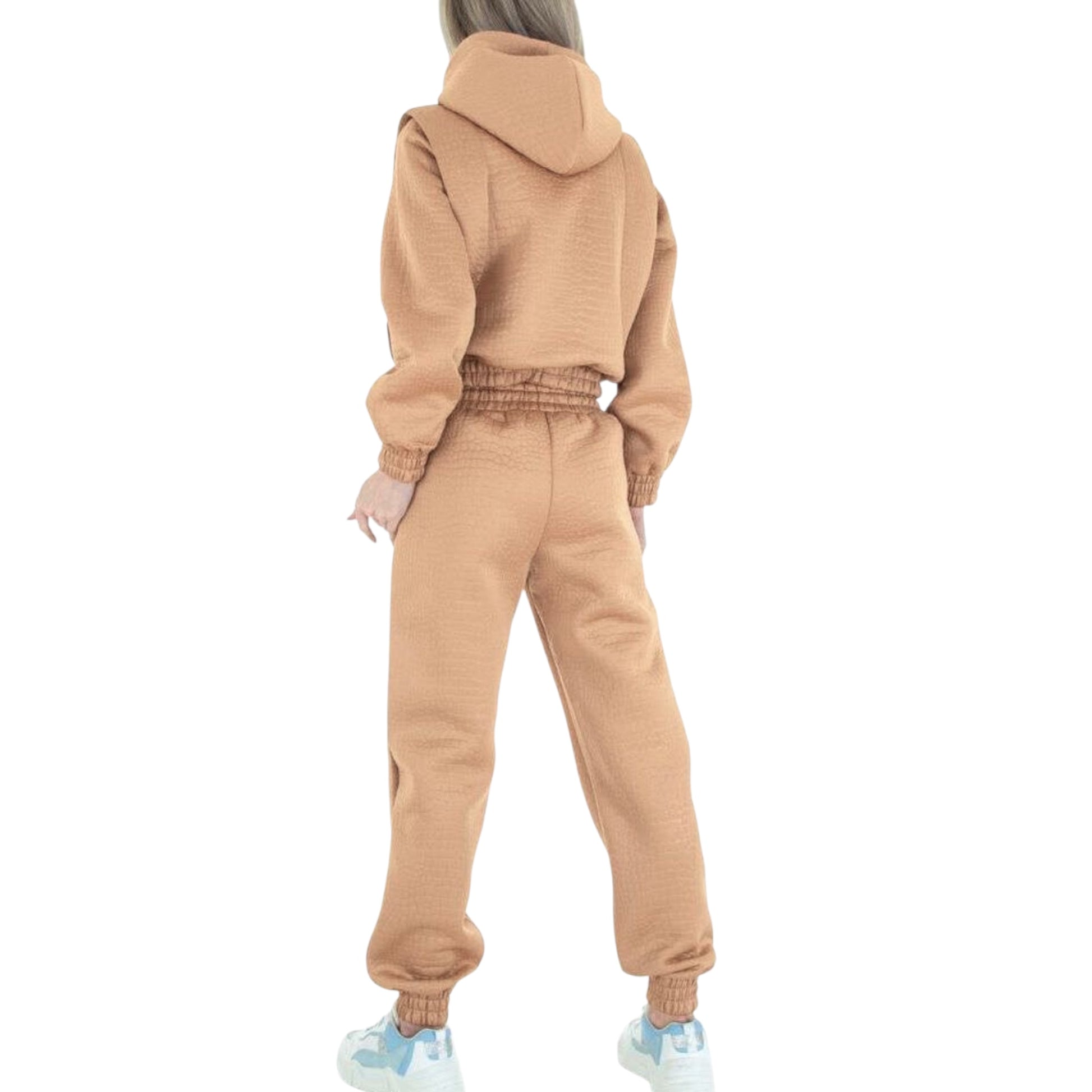Ky set sportiv dypjesësh kombinon stilin urban me rehati maksimale. Përbëhet nga bluzë me kapuç dhe pantallona sportive me bel elastik, të dizajnuara për përditshmëri, dalje casual apo aktivitete të lehta. Materiali me teksturë unike i jep një pamje moderne, ndërsa elasticiteti dhe përshtatja e bëjnë praktike dhe komode.