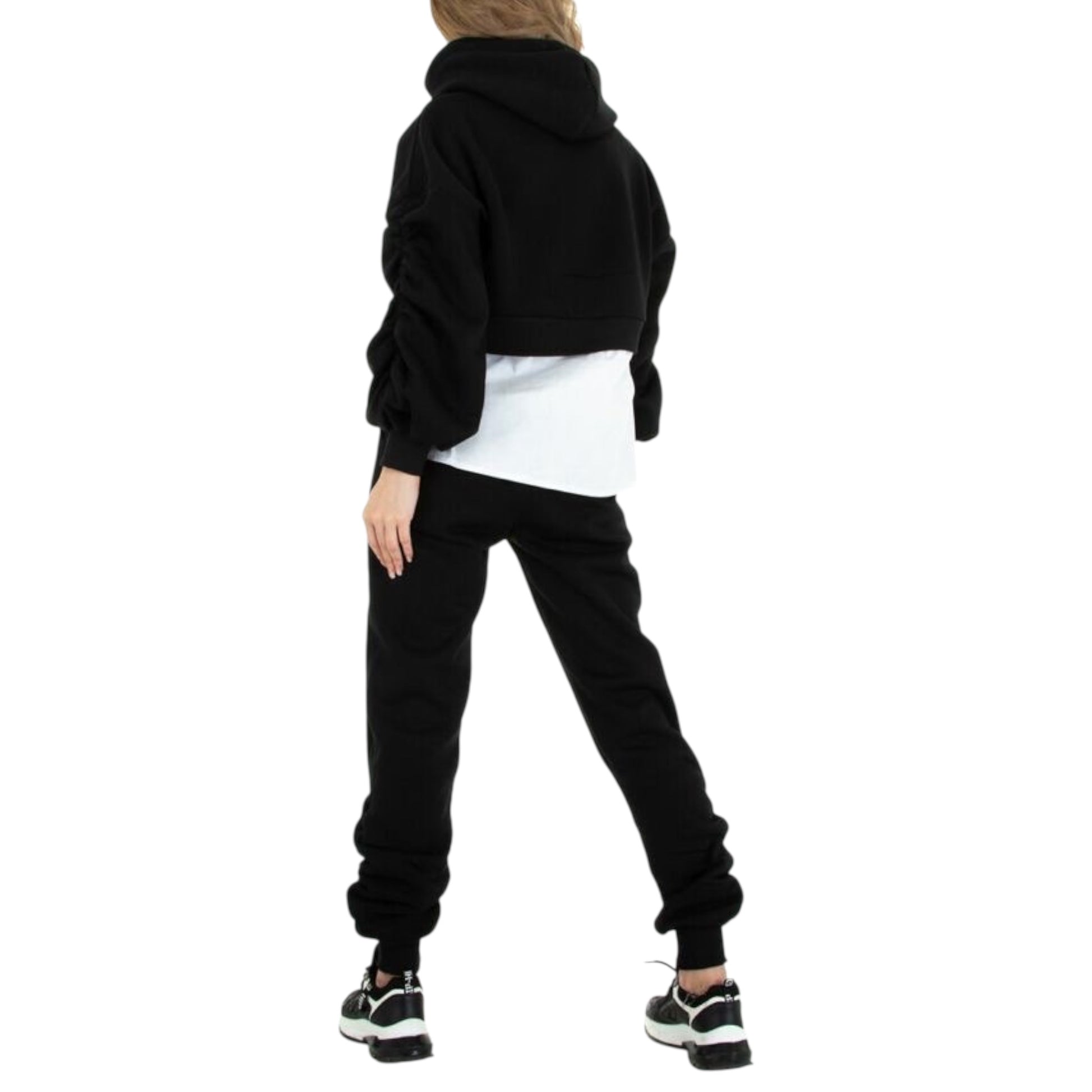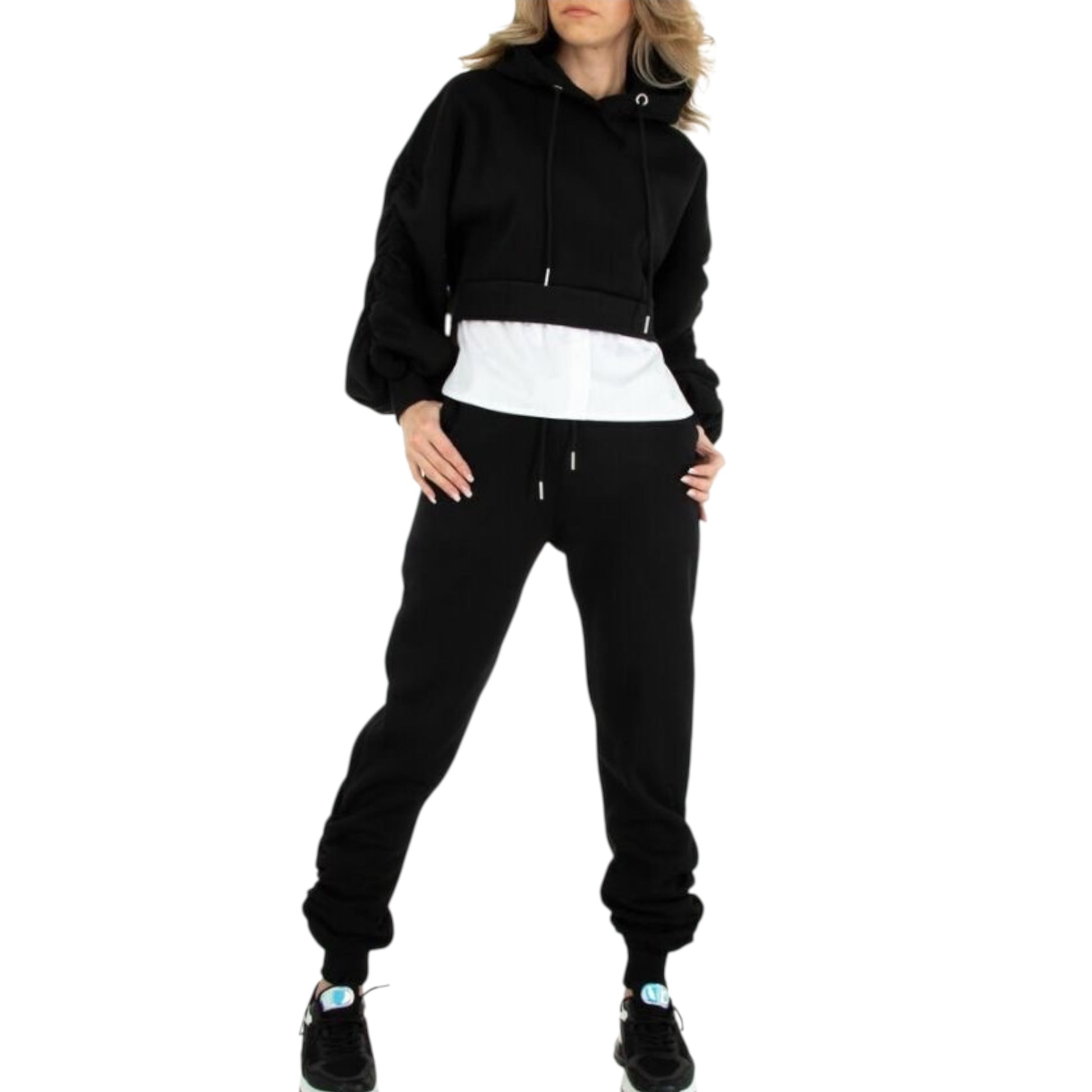 Set sportiv me kapuç – Ngjyrë e zezë me detaj këmishë