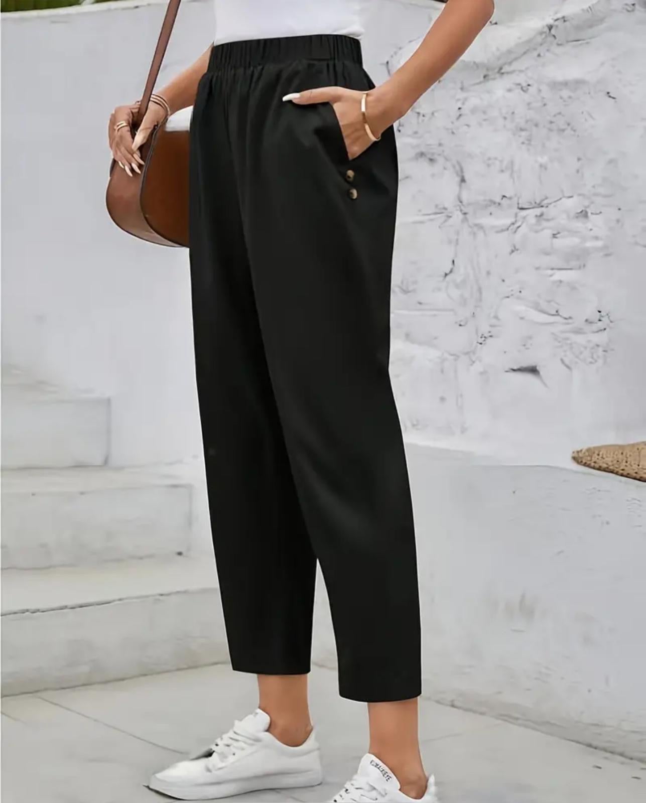 Pantallona me të dyja anët me dy xhepa me nga dy pulla dekorative të lehta për një stine verore. Komode falë materialit me cilësi të lartë.