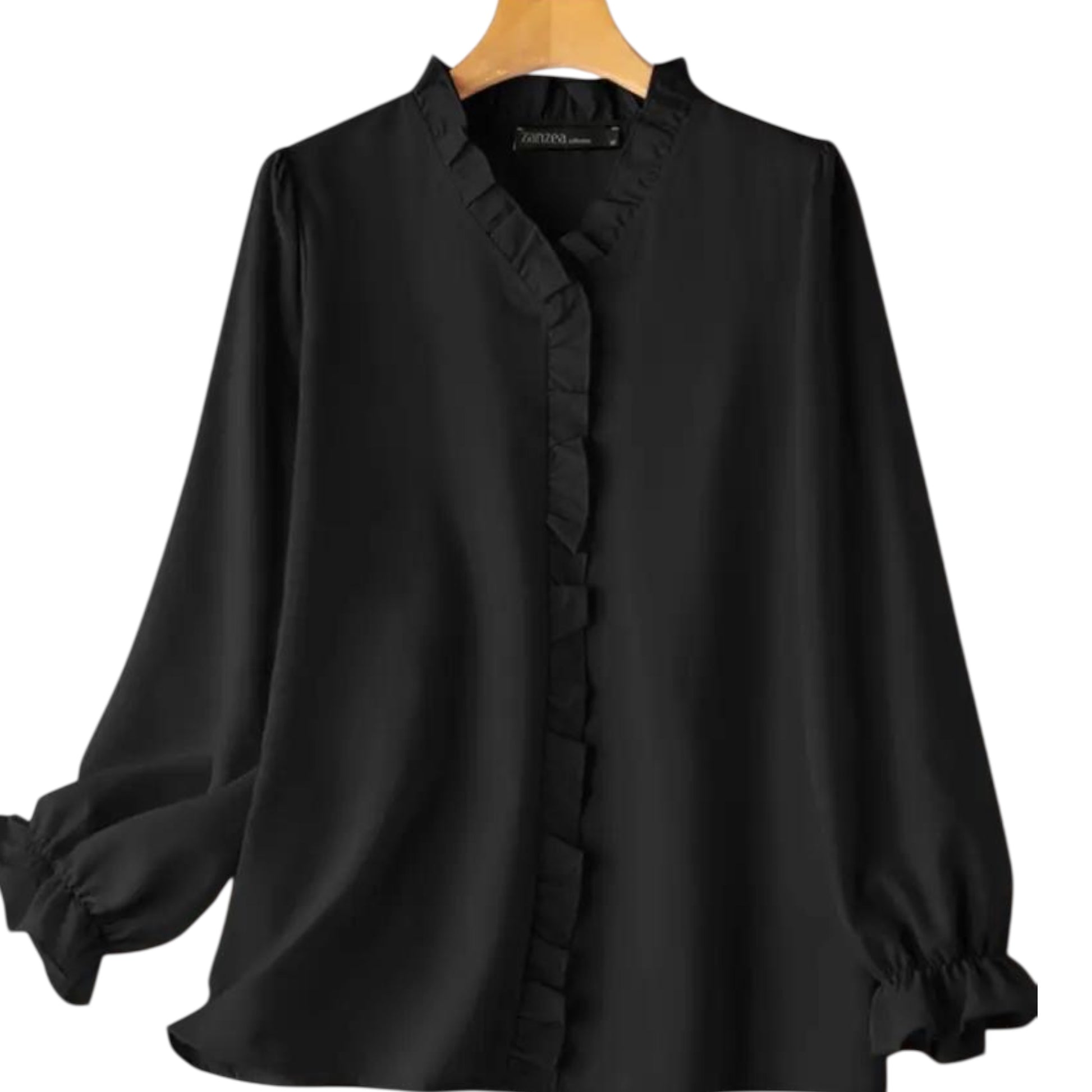 Bluzë këmishë verore me mëngë të gjata e lehtë me jakë me qepje palosje si flutur qe vazhdon edhe përpara.Komode falë materialit me cilësi të lartë.