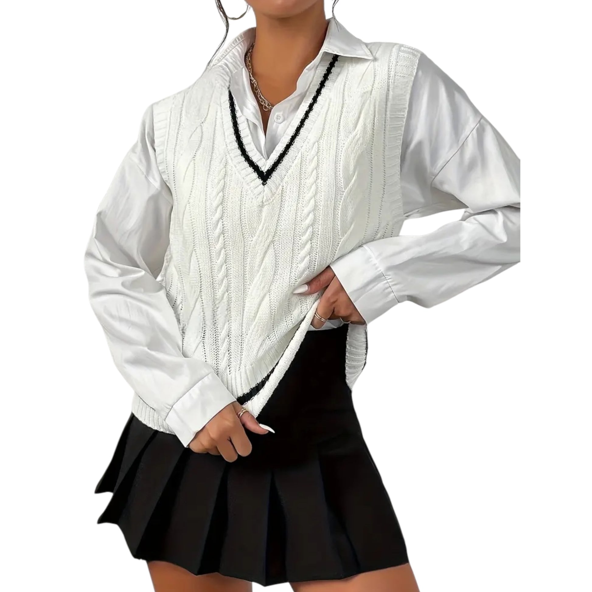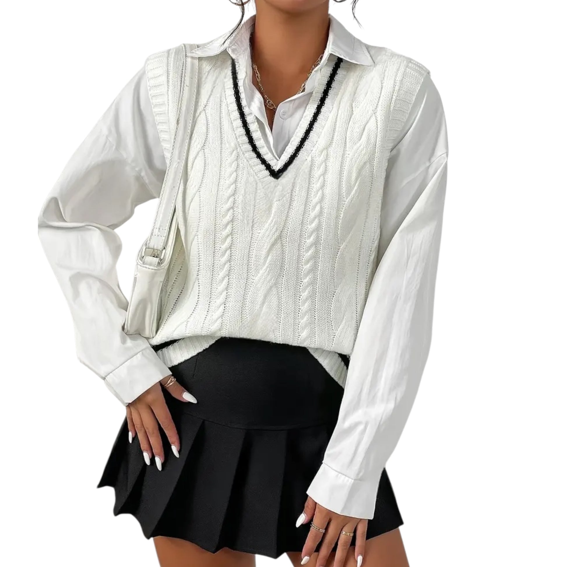 Jelek i trikotuar me jakë V. Komode falë materialit me cilësi të lartë.